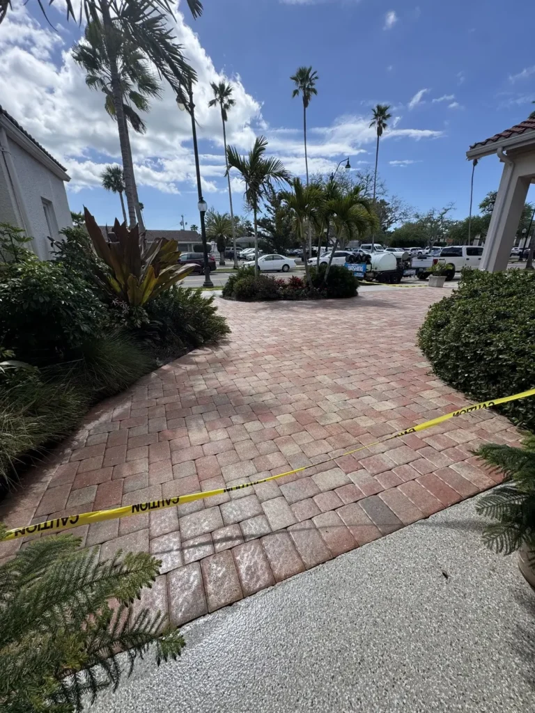 In Florida, a professional paver seal typically lasts between 2 to 4 years, depending on the amount of sun exposure, vehicle traffic, and whether it’s a water-based or solvent-based product. We will recommend a maintenance schedule to keep your property looking its best.